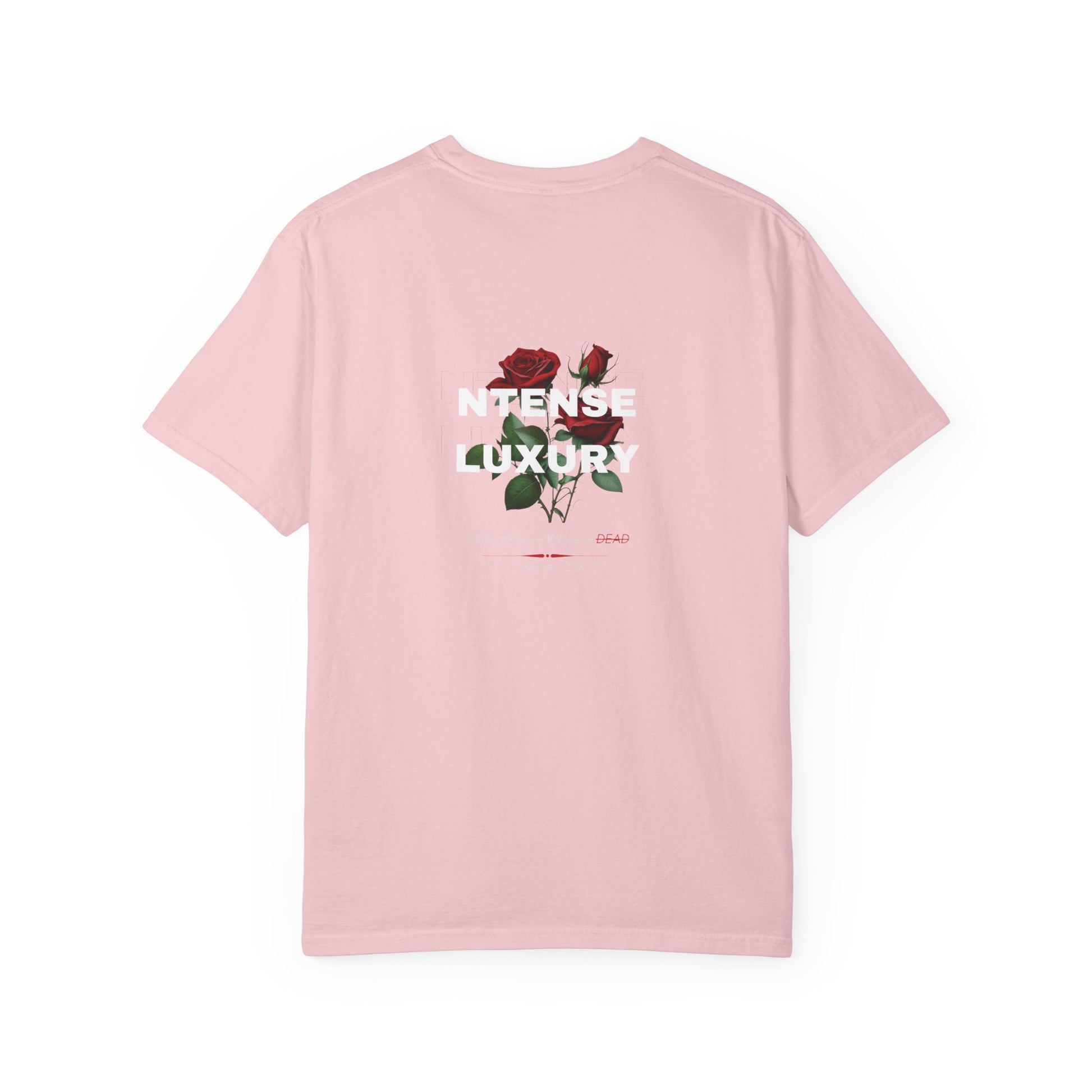 This relaxed-fit garment-dyed tee feels lived-in from the first wear. The front carries a hand-lettered message layered over vintage-inspired type, while the back shows a soft floral vignette with bold, modern lettering — a subtle mix of streetwise confidence and quiet, grown-up tenderness. Wear it on slow mornings with coffee at your favorite neighborhood café, or layered under a denim jacket for an evening of low-key conversation. The heavyweight cotton and garment-dye give the print a natural, broken-in look that ages together with the shirt — not apart from it. It’s for people who move through their days with intention, who prefer understated statements and clothes that become part of their story.